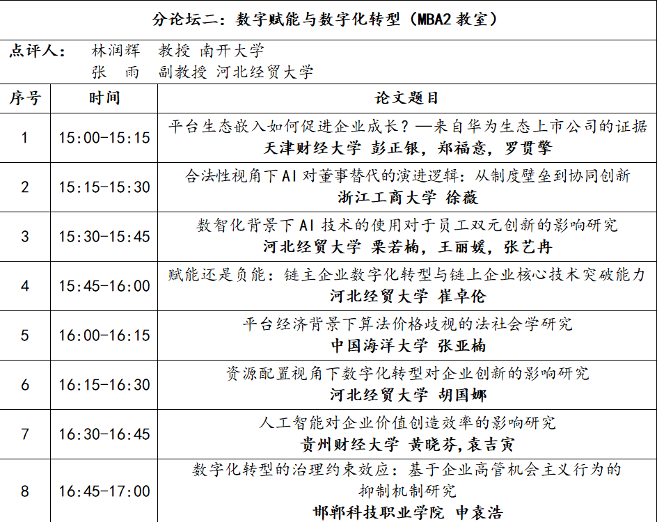 分论坛二:数字赋能与数字化转型(MBA2教室)