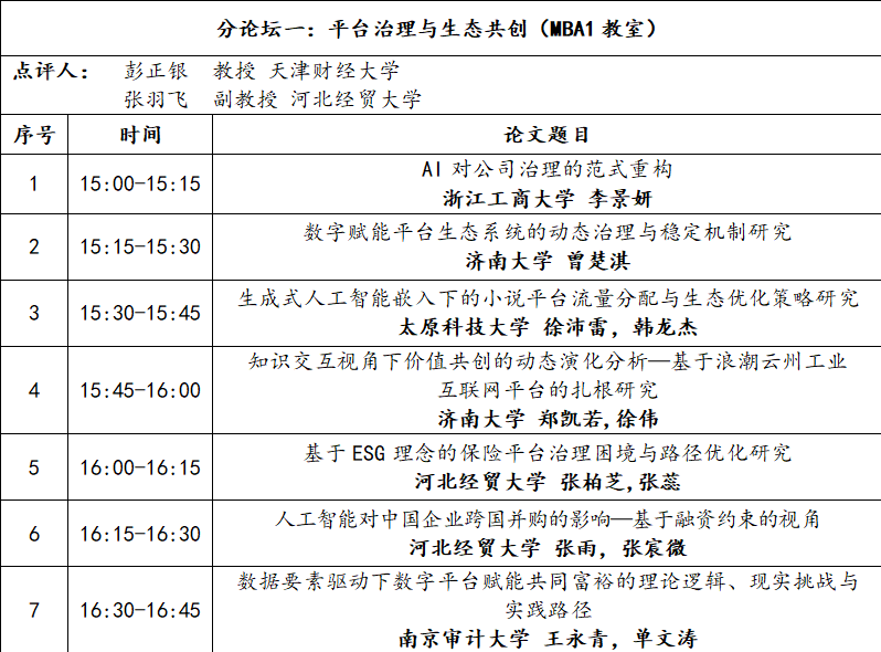 分论坛一:平台治理与生态共创(MBA1教室)