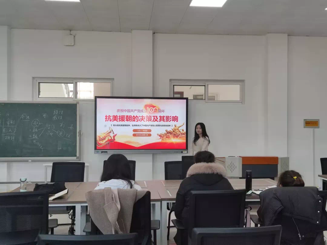 靳玉同学以一个精彩的视频《建国前中国共产党的光辉历程》引入主题。中国共产党一路走来,充满着苦难和辉煌、曲折与胜利、付出与收获,这些风雨兼程是中华民族继往开来、奋斗前进的现实基础。无数革命先烈抛头颅、洒热血才换来今天的幸福生活,幸福生活来之不易,所以我们一定要学会珍惜。随后,她讲述了中国72年的历史进程和伟大奇迹。在新中国成立之后,中国共产党一直在探索中前进,这个探索的过程是非常曲折的。我党团结带领人民完成社会主义革命,建立社会主义基本制度,完成了中华民族有史以来最为深刻而伟大的变革,为当代中国一切发展进步奠定了根本政治前提和制度基础。社会主义制度建立之后,我党领导人民开展大规模的社会主义建设,取得巨大成就,初步形成了比较完整的国民经济体系和工业体系,为后来的富起来奠定了基础。党的十一届三中全会之后,我党果断地做出了改革开放的伟大决策,开辟了中国特色社会主义道路,使中国大踏步赶上时代。最后,她和同学们积极互动,分享了此次学习新中国史的心得体会。她讲到,中国共产党经历了革命、建设、改革的长期考验,积累了丰富的历史经验。我们要在党的发展史中汲取营养、启迪智慧,将党的光荣传统和优良作风进一步发扬光大,持续提高自己处理实际问题的能力。