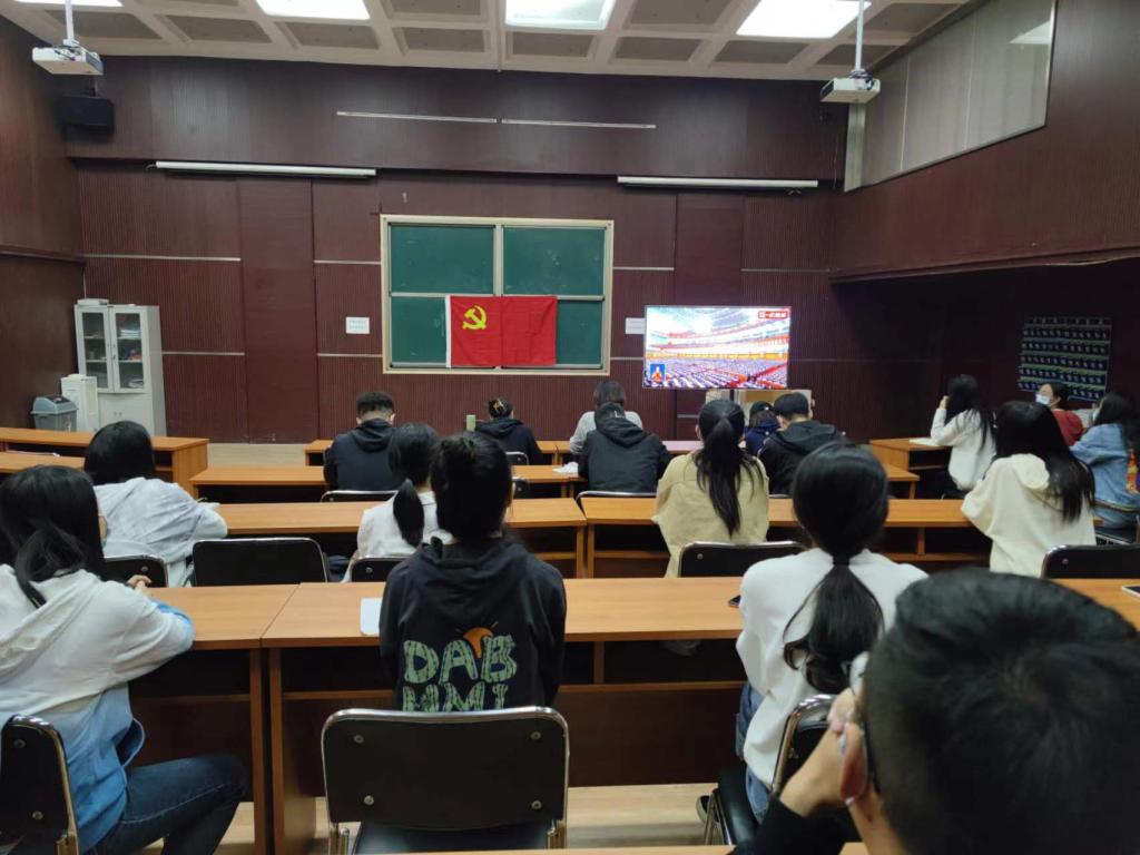 9时40分许,在学院报告厅,学院教师和学生党员代表提前到来,共同期待着收看开幕会。学生会和研究生代表分别在MBA1和MBA2教室,各团支部学生在不同教室集中收看。随着嘹亮的国歌声响起,大家一起起立,共同跟唱。在观看大会的过程中,听着振奋人心的报告内容,现场频频响起掌声。